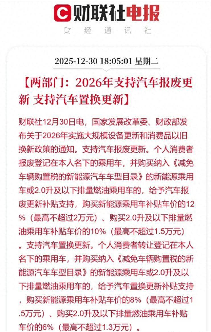 2026年新国补新政一出,这也让真正需要消费升级买个好车的人能够领到补贴,而两类人天塌了。