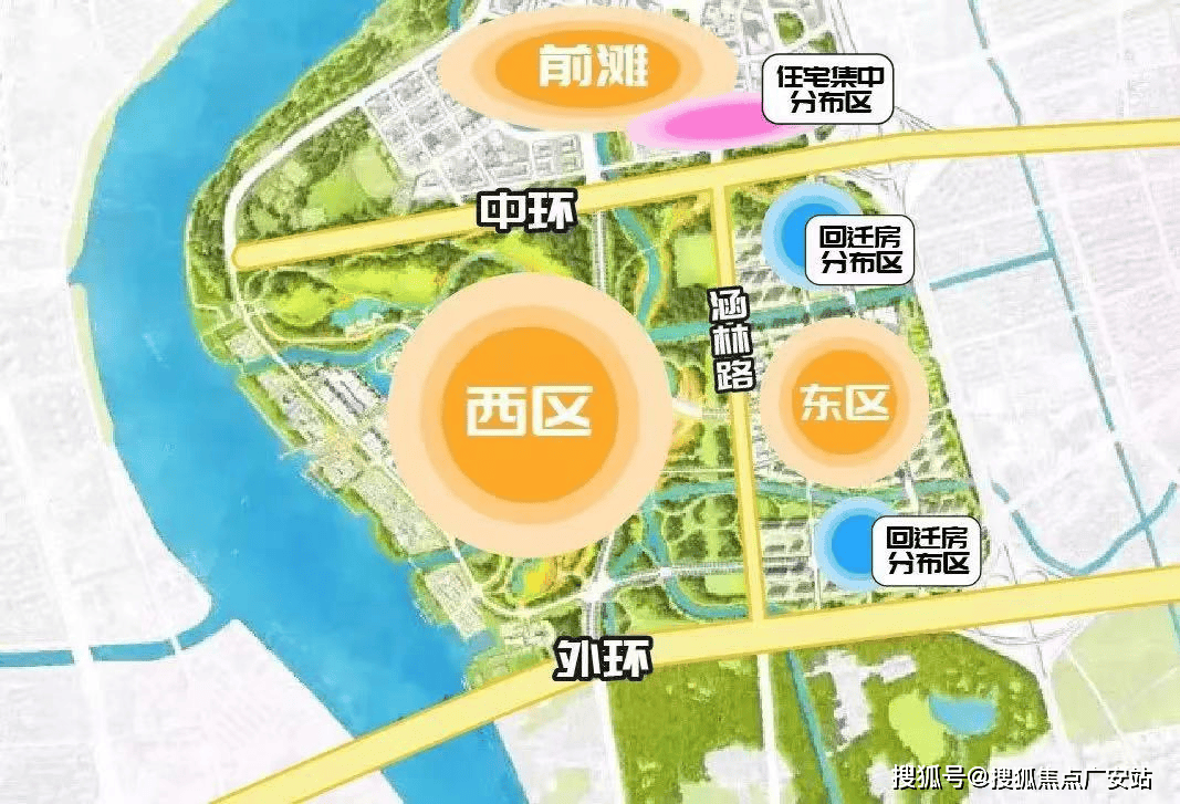 而前滩南滨江是紧贴着前滩的南面,二者的分界线就是中环路的道路中心线”距离。