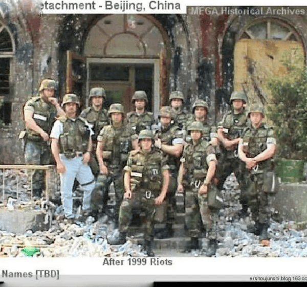 1999年,在北京美国大使馆的美国海军陆战队,中国人时至今日也很难接受有一支外军驻扎在国境线内——哪怕这是对等驻扎