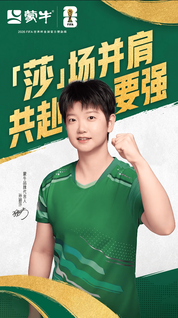 3月27日,蒙牛官宣孙颖莎正式成为品牌代言人。2025年12月9日,孙颖莎成为蒙牛冠益乳亚太区唯一品牌代言人。
