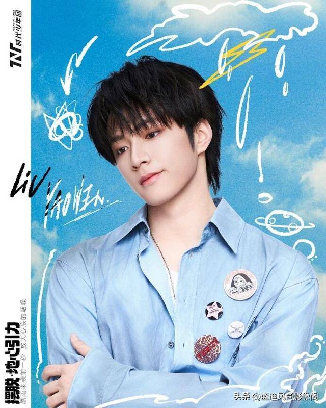 整组宣传图以治愈系晴空蓝为核心底色,手绘的云朵、火箭、飞船、闪电、自行车等童趣元素肆意铺展,像少年们随手写下的青春狂想,完美呼应了《摆脱地心引力》“挣脱桎梏、失重奔赴、无拘无束” 的核心主题。没有繁复的布景,没有夸张的造型,只用最干净的蓝白配色,就勾勒出了独属于少年人的浪漫乌托邦,仿佛穿过层层云层,便闯入了他们藏在晴空里的失重梦境,每一处线条、每一个图案,都藏着不被定义的青春想象力。